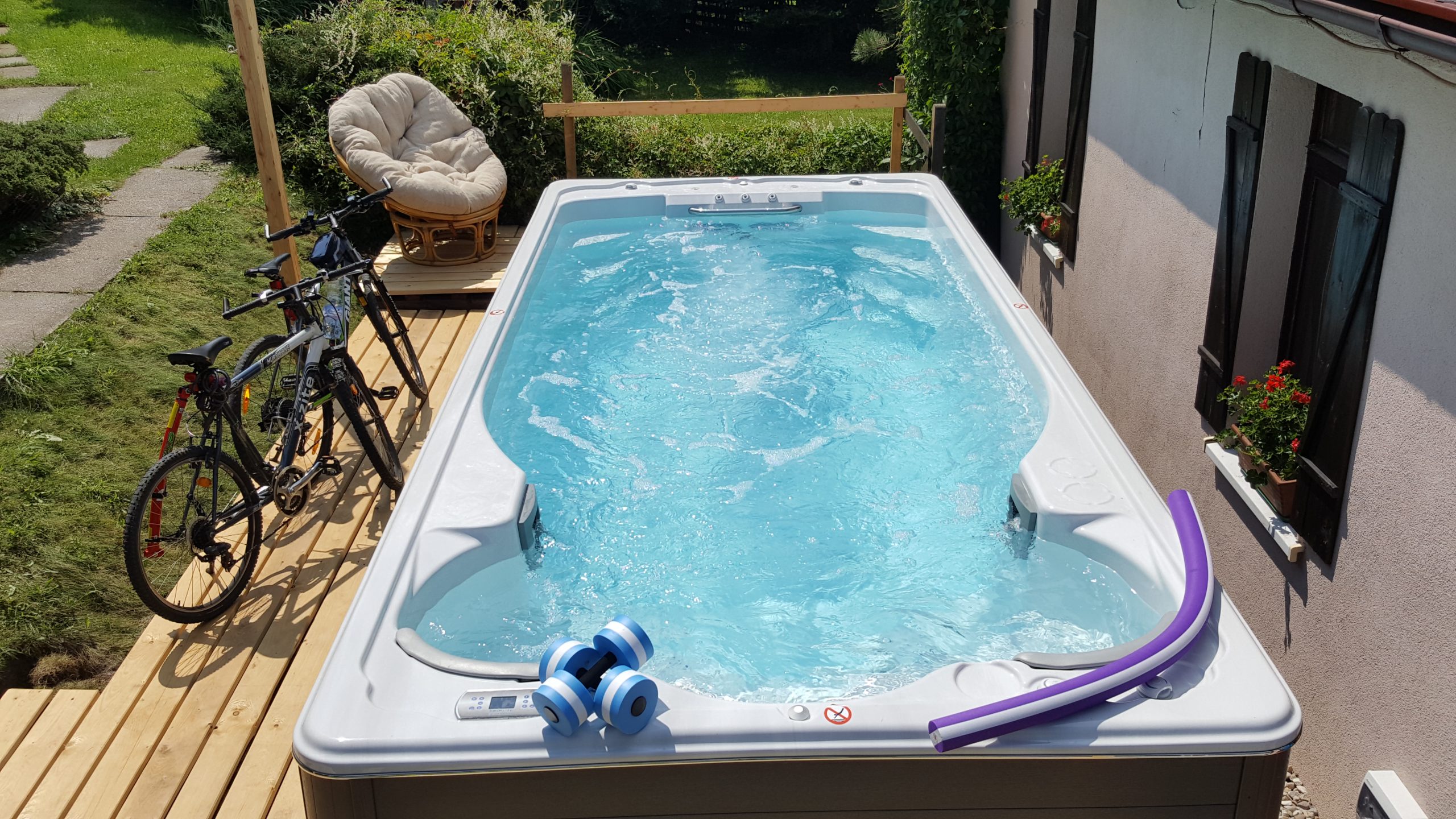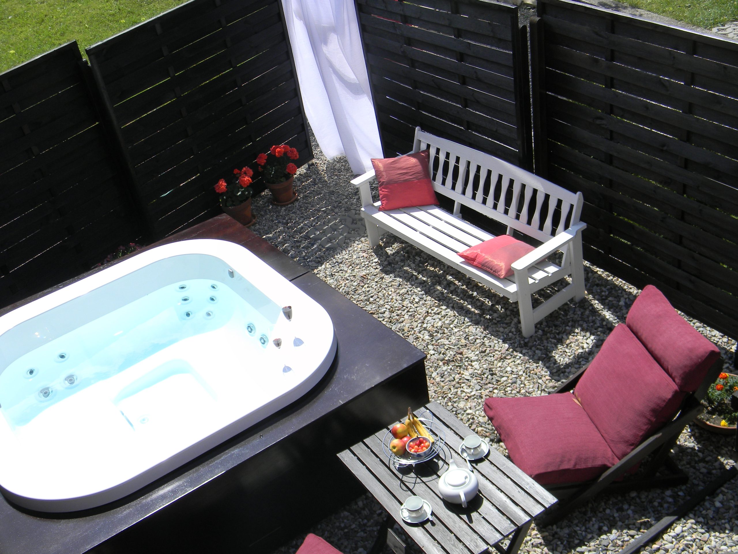 Kilka lat temu podjęliśmy z żoną decyzję o zakupie ogrodowego Jacuzzi. Nie przypuszczaliśmy wtedy, że będzie to strzał w 10tkę. Najpierw otrzymaliśmy fachowe porady od personelu salonu HERBEĆ, wybraliśmy 4-osobową wannę, potem przygotowaliśmy teren i nastąpiła instalacja, blisko wyjścia z domu, koło 8 metrów. Szybko okazało się, że kąpiele i masaże stały się naszym rytuałem. Czy słota, czy mróz, czy piękny pogodny wieczór, 20 minut kąpieli cudownie relaksuje i pozwala na zamknięcie pracowitego dnia. Zwłaszcza zimą kąpiel w parującej wodzie jest czarowna , nic zatem dziwnego, że praktycznie od chwili zakupu po dziś korzystamy z Jacuzzi co najmniej 3/4 razy w tygodniu. Teraz trudno sobie wyobrazić nasze życie bez Jacuzzi.